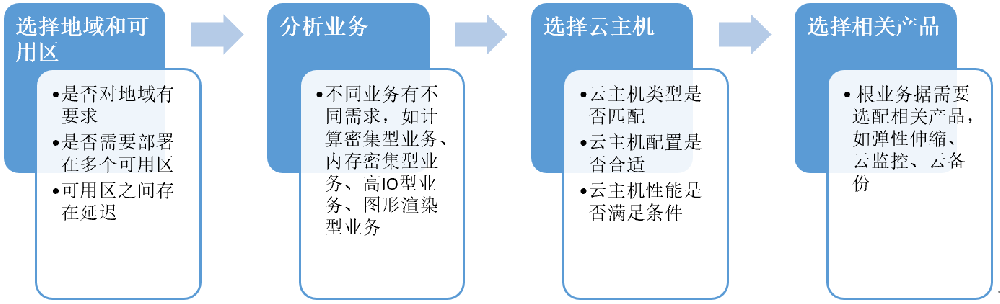 本实践将从云主机功能特性、常见业务场景、注意事项及最佳实践等方面介绍如何进行实例选型,旨在帮助您了解应如何结合实际业务场景选购云主机。实例选型分析过程如下图所示: