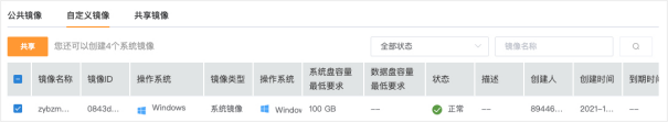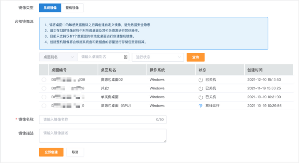 6. 点击“立即创建”,即完成自定义镜像的创建。
