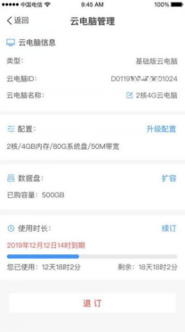 3. 点击“管理”,可以查看云电脑的配置信息,以及编辑云电脑的名称。